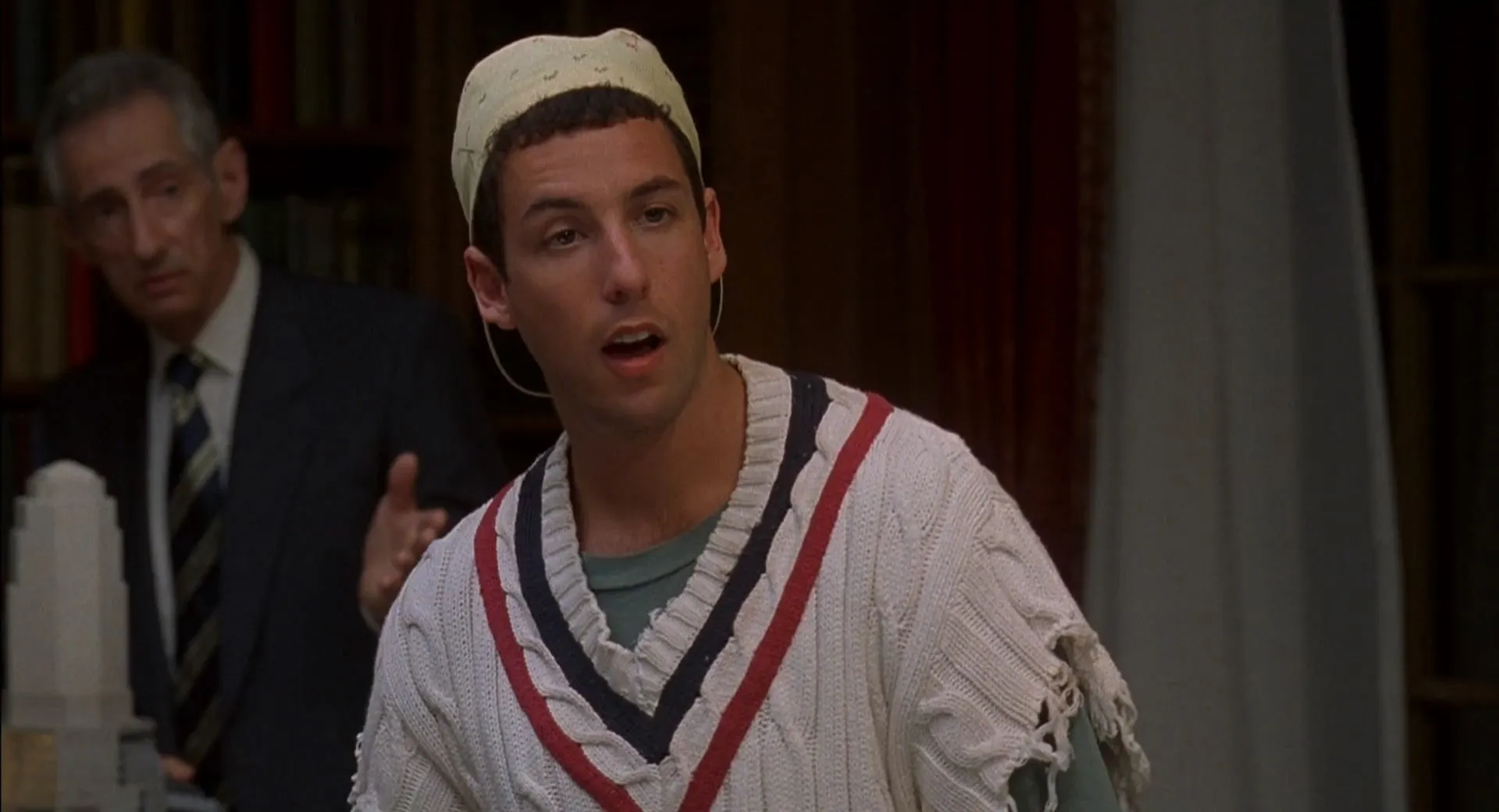 Cast: Adam Sandler as Billy Madison, Bradley Whitford as Eric Gordon, Josh Mostel as Principal Max Anderson, Bridgette Wilson-Sampras as Veronica Vaughn, Darren McGavin as Brian Madison, Norm Macdonald as Frank, Mark Beltzman as Jack, Larry Hankin as Carl Alphonse, Theresa Merritt as Juanita, Dina Platias as Miss Lippy, Hrant Alianak as Pete, Vincent Marino as Cook, Christopher Kelk as Rollo the Janitor, Marc Donato as Nodding 1st Grader, Keith Cole as Penguin, Chris Mei as Penguin, Conor Devitt as O'Doyle (Grade 1), Jared Durand as Scotty Logan (Grade 1), Jessica Nakamura as Tricia Labonte (Grade 1), Helen Hughes as 2nd Grade Teacher, Jacelyn Holmes as 2nd Grader, Jack Mather as Ted 'Old Man' Clemens, Claire Cellucci as Attractive Lady, Shane Farberman as Clown, Al Maini as Driver, Jared Cook as Ernie (Grade 3), Christian Matheson as O'Doyle (Grade 3), Kyle Bailey as Kyle, Vernon Chapman as Butler, Mandy Watts as Maid, Austin Pool as Dan (Grade 3), Gladys O'Connor as Tour Guide, Marcia Bennett as 4th Grade Teacher, Diane Douglass as Nurse, Tim Herlihy as Architect, Frank Nakashima as Architect, Joyce Gordon as Lunch Lady, Jordan Lerner-Ellis as Pothead, Daniel Lerner-Ellis as Pothead, Robert Smigel as Mr. Oblaski, Melissa Korzenko as Nancy Connors, Colin Smith as O'Doyle (Grade 9), Jeff Moser as Paul, Amos Crawley as Rod, Tex Konig as Crazy Person, Eduardo Gómez as Crazy Person, Tanya Grout as Joyce, Benjamin Barrett as Tenth Grader, Matthew Ferguson as Tenth Grader, Sean Lett as O'Doyle (Grade 12), Stacey Wheal as Jennifer (Grade 3), Shanna Bresee as Susan (Grade 3), Michael Ayoub as Drama Teacher, Lawrence Nakamura as Lawn Guy, Gino Veltri as Rock Singer, James Downey as Principal, Bob Rodgers as Mr. O'Doyle, Margo Wladyka as Mrs. O'Doyle, Allison Robinson as Newswoman, Marcel Jean Gilles as Haitian Gardener, Suzanna Shebib as High School Girl, Justin Williams as 3rd Grader, Nicholas A. Catalano as 3rd Grader, Devon Codrington as 3rd Grader, Nicole Harrison as 3rd Grader, Lindsay Curran as 3rd Grader, Brandi Tower as 3rd Grader, Cassandra Forrester as 3rd Grader, Matthew Tempest as 3rd Grader, Michelle Toth as 3rd Grader, Craig MacIsaac as 3rd Grader, Tara Rooney as 3rd Grader, Robby Cavallari as 3rd Grader, Ryan Luis as 3rd Grader, Alanna Budhoo as 3rd Grader, Shomar Dejonge as 3rd Grader, Carmela Bigioni as 3rd Grader, Eric Aguilera as 3rd Grader, Kevin Le Roy as Jet Skier, Kelly Childerhose as Jet Skier, Ken Shires as Fire-eater, Steve Buscemi as Danny McGrath (uncredited), Chris Farley as Bus Driver (uncredited)